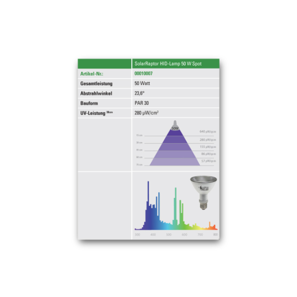 LES AMPOULES HID 50 W Fonctionne avec un Ballast UV SOLAR RAPTOR 50 W EVG